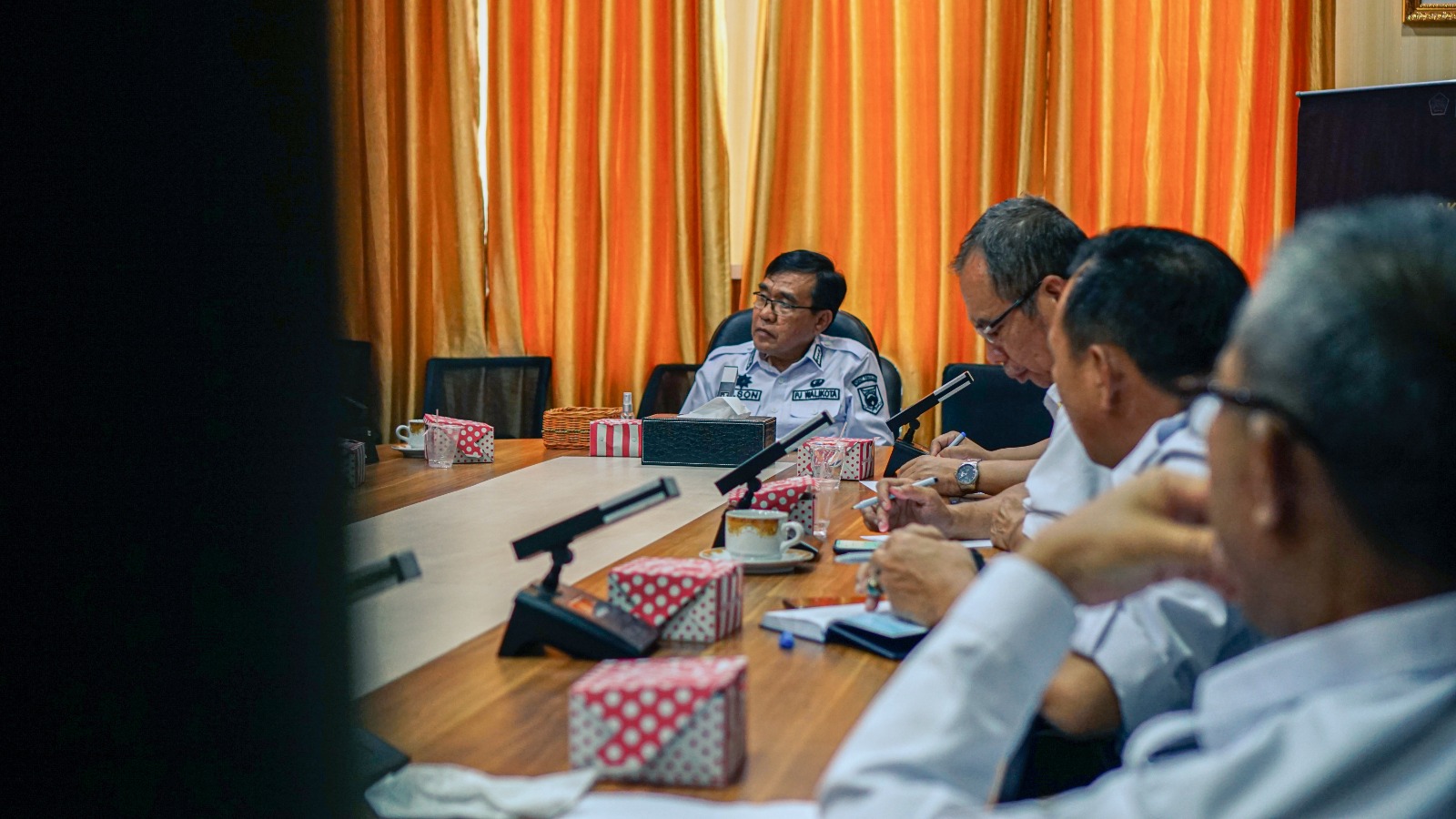 Audiensi ini dihadiri oleh Penjabat (Pj.) Wali Kota Pagar Alam, Drs. Nelson Firdaus, M. M., yang didampingi oleh Asisten 1, Sekretaris Daerah, Kepala Badan Keuangan Daerah (BKD), dan staf lainnya.
