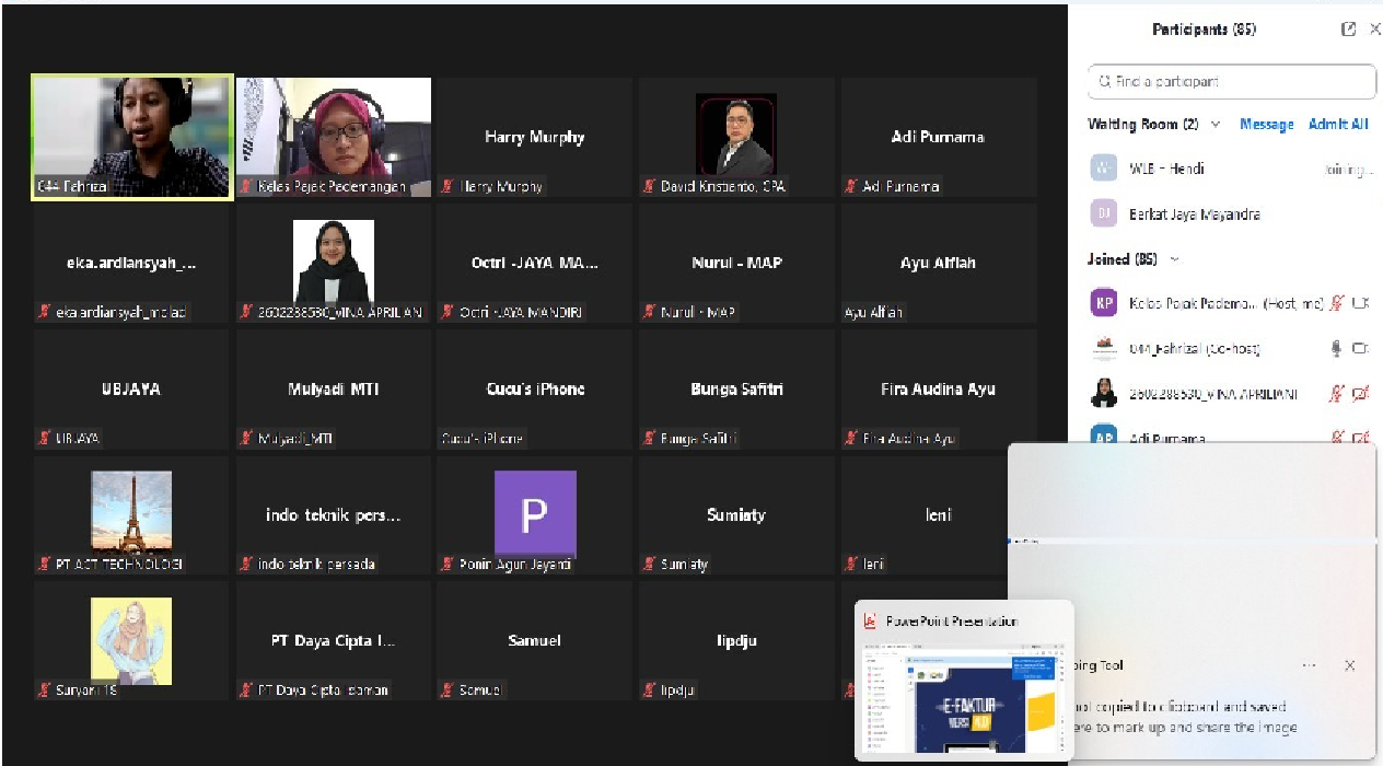 Kantor Pelayanan Pajak (KPP) Pratama Jakarta Pademangan adakan kelas pajak Panduan Update E-Faktur 4.0 secara daring melalui aplikasi Zoom Meeting Cloud di Jakarta Utara (Kamis, 25/7).