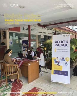 Kantor Pelayanan Pajak (KPP) Pratama Jakarta Kebon Jeruk Satu membuka layanan Pojok Pajak bertempat di Kantor Kecamatan Kebon Jeruk, Jalan Raya Kebon Jeruk Nomor 2, Kebon Jeruk Jakarta Barat (Senin, 14/2). Layanan Pojok Pajak ini dibuka selama satu pekan dari tanggal 13 hingga 17 Februari 2023 mulai pukul 09.00 sampai dengan 15.00 WIB.