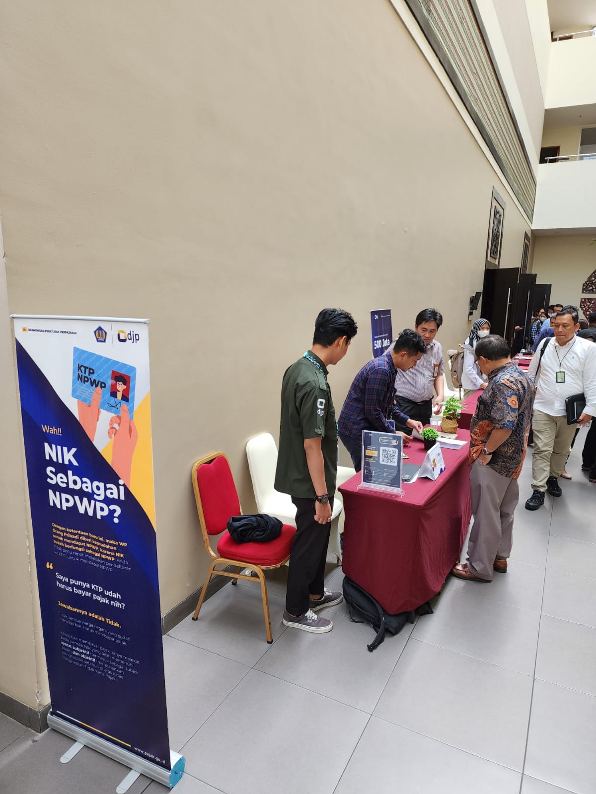 KPP Pratama menugaskan Account Representative Alfi Barki, Fungsional Penilai Pajak Niko Irawan Setya Putra, dan Penyuluh Pajak Muhamad Isman untuk melayani konsultasi peserta acara sosialisasi dalam bentuk informasi dan edukasi terkait pemenuhan kewajiban perpajakan. Fungsional Penyuluh Ahli Madya Kantor Wilayah DJP Kalimantan Selatan dan Tengah Alfathir Badra dan Fungsional Penilai Pajak Penyelia Kelik Nugroho turut mendampingi dalam asistensi pemberian layanan konsultasi perpajakan.