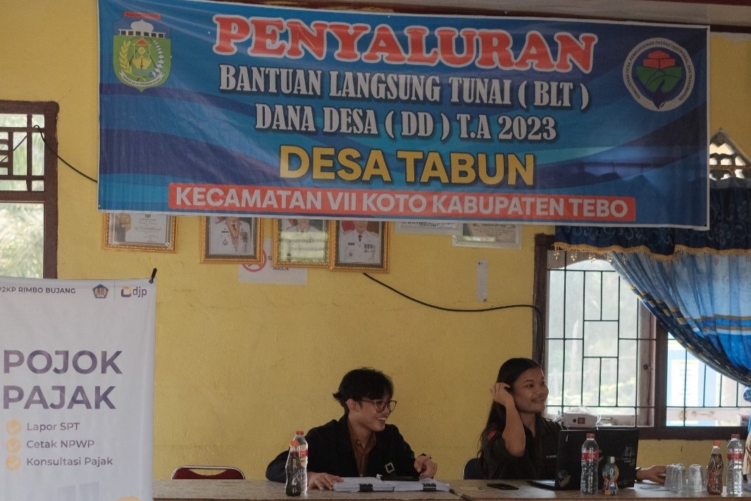 Kantor Pelayanan, Penyuluhan, dan Konsultasi Perpajakan (KP2KP) Rimbo Bujang mengadakan pojok pajak di Desa Tabun (Selasa, 26/9). Pojok pajak diselenggarakan sejak pukul 11.30-13.00 WIB di Kantor Desa Tabun Kecamatan VII Koto.