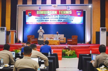 Kepolisian Daerah (Polda) Kepulauan Bangka Belitung menggandeng Kantor Pelayanan Pajak (KPP Pratama Pangkal Pinang) mengadakan Bimbingan Teknis Pelaporan SPT Tahunan Wajib Pajak Orang Pribadi Tahun 2021 di Hotel Grand Vella, Kota Pangkal Pinang (Selasa, 8/2).