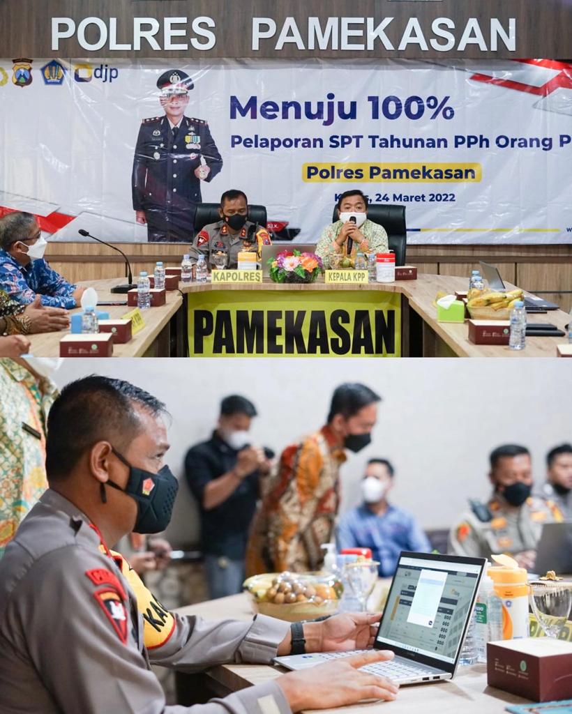 Kantor Pelayanan Pajak (KPP) Pratama Pamekasan mengadakan kelas pajak pengisian SPT Tahunan di Polres Pamekasan. Kegiatan berlangsung dari pukul 09.00 s.d. 12.00 WIB yang diikuti oleh Kapolres Pamekasan AKBP Rogib Triyanto beserta jajarannya (Kamis, 24/03).