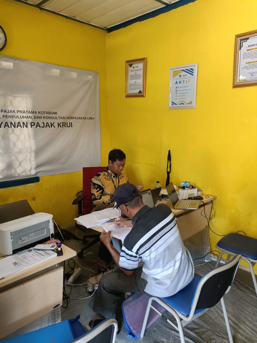 Kantor Pelayanan Pajak (KPP) Pratama Kotabumi dengan Kantor Pelayanan, Penyuluhan, dan Konsultasi Perpajakan (KP2KP) Liwa menyelenggarakan layanan pajak di luar kantor berupa pos pelayanan pajak bertempat di Pos Pelayanan Krui, Kabupaten Pesisir Barat (Selasa,07/03). Layanan ini berlangsung selama tiga hari sejak hari Selasa tanggal 07 Maret 2023 sampai dengan hari Kamis tanggal 09 Maret 2023.
