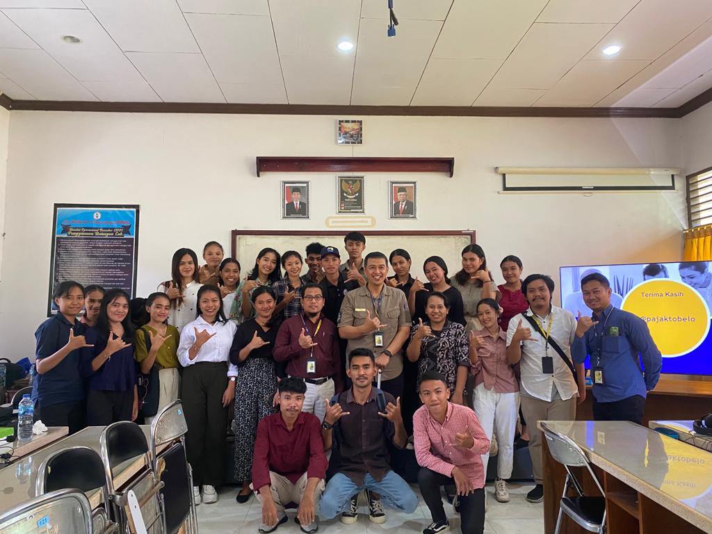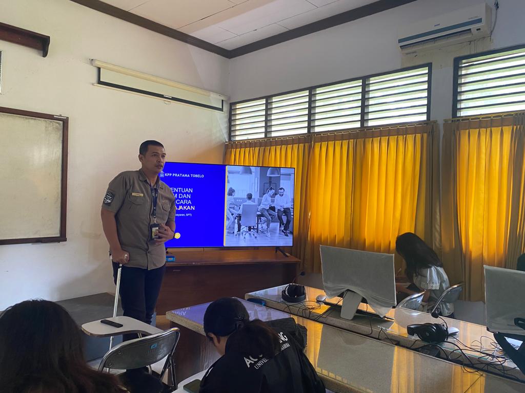 Kantor Pelayanan Pajak (KPP) Pratama Tobelo diundang sebagai moderator dalam Program Praktisi Mengajar di Kampus Program Studi Akuntansi dan Program Studi Manajemen Universitas Halmahera, Tobelo, Maluku Utara. Undangan sebagai moderator ini berjalan selama dua hari, yaitu mulai tanggal 13 s.d. 14 September 2023. Pegawai yang ikut mengajar pada program tersebut adalah Kepala Seksi Pengawasan V Ismail Fahmy, Kepala Seksi Pelayanan Handoko Susilo, Fungsional Penyuluh Pajak Asrullah, dan Pelaksana Seksi Pelayanan Abdul Alim (Rabu, 13/9).