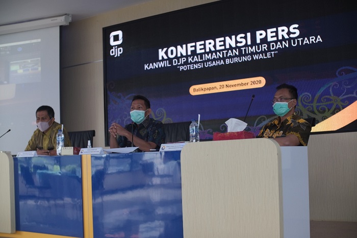 Kantor Wilayah Direktorat Jenderal Pajak Kalimantan Timur dan Utara (Kanwil DJP Kaltimtara) menggelar Konferensi Pers tentang Potensi Pajak Usaha Sarang Burung Walet kepada awak media di Balikpapan (20/11). Kegiatan dilaksanakan secara tatap muka dengan tetap menggunakan protokol kesehatan di Aula lantai 4 Kanwil DJP Kaltimtara, Jalan Ruhui Rahayu No. 1 Ringroad Kota Balikpapan dan secara virtual melalui akun Zoom Cloud Meetings yang dimulai pada pukul 08.30 WITA.