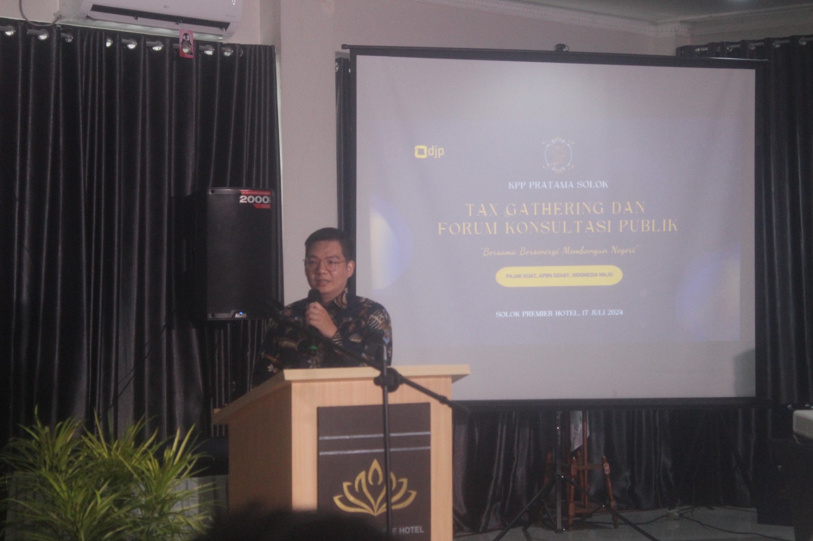 Acara Tax Gathering dan Forum Konsultasi Publik yang diselenggarakan oleh Kantor Pelayanan Pajak (KPP) Pratama Solok di Hotel Solok Premier pada hari Rabu, 17 Juli 2024, mendapat apresiasi tinggi dari Direktur PT Tidar )Kerinci Agung, yang datang jauh dari Kota Medan untuk hadir dalam acara tersebut (Rabu, 17/7).
