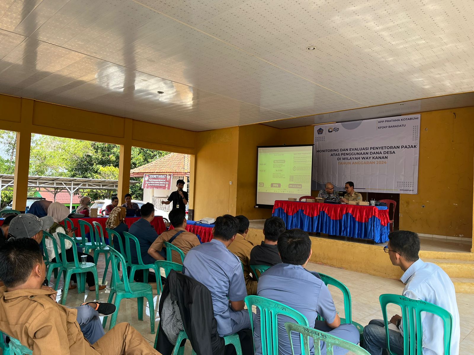 Bertempat di Aula Kecamatan Gunung Labuhan, Kabupaten Way Kanan, Kantor Pelayanan, Penyuluhan, dan Konsultasi Perpajakan (KP2KP) Baradatu bersama dengan Kantor Pelayanan Pajak (KPP) Pratama Kotabumi menyelenggarakan kegiatan edukasi pajak kepada aparatur dari puluhan desa di wilayah Kecamatan Gunung Labuhan dan Kecamatan Baradatu (Selasa, 30/7).