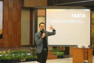 Riza Almanfaluthi Kepala Seksi Pengelolaan Situs Direktorat P2Humas DJP, hadir sebagai narasumber untuk meningkatkan kualitas penulisan fiskus Joglosemar. Riza berbagi tips dan trik tentang bagaimana bisa produktif dalam menulis dan menghasilkan tulisan yang baik. “Menulis itu mudah, menulis itu asyik,” tutur pria pemilik blog rizaalmanfaluthi.com tersebut.