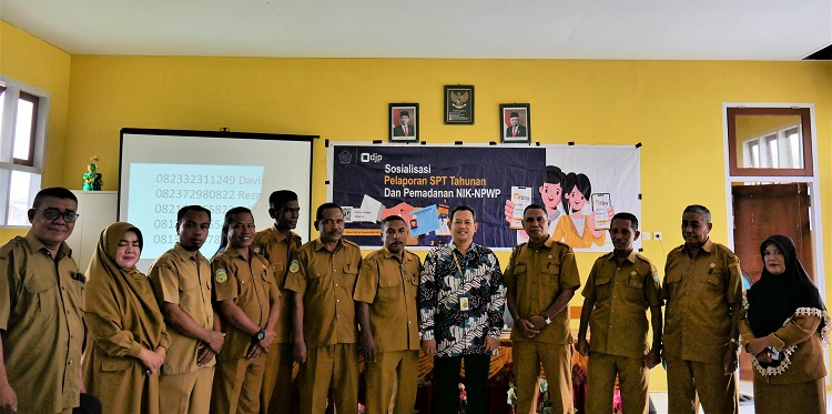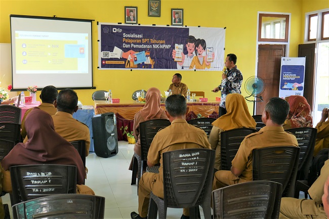 Kantor Pelayanan Penyuluhan dan Konsultasi Perpajakan (KP2KP) Namlea melaksanakan kegiatan sosialisasi pemadanan NIK menjadi NPWP dan pelaporan SPT Tahunan PPh Orang Pribadi kepada para guru TK, SD, SMP dan yang setingkat di Kecamatan Waplau, Kabupaten Buru, Maluku (Selasa, 21/2). Kegiatan yang bertempat di SMP Negeri 12 Buru ini dihadiri oleh sekitar 40 peserta yang merupakan perwakilan dari masing-masing sekolah.