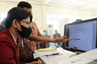 Setelah pemaparan materi perpajakan, relawan pajak diberikan kesempatan untuk terjun langsung memberikan asistensi pelaporan SPT Tahunan kepada wajib pajak di KPP Pratama Jombang. Dari 20 peserta yang hadir, mereka dibagi menjadi kelompok-kelompok kecil. Masing-masing kelompok memberikan layanan kepada satu wajib pajak, yang tentunya didampingi oleh satu penyuluh pajak.