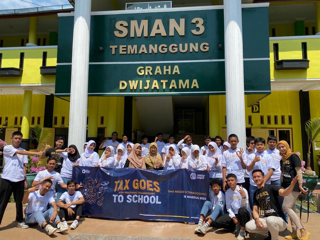 Kantor Pelayanan Pajak (KPP) Pratama Temanggung menyelenggarakan kegiatan Tax Goes To School (TGTS) dengan Sekolah Menegah Atas (SMA) Negeri 3 Temanggung. Kegiatan Tax Goes To School (TGTS) diikuti oleh 32 siswa yang dilaksanakan di aula SMA Negeri 3 Temanggung, Kab. Temanggung (Selasa, 15/8).