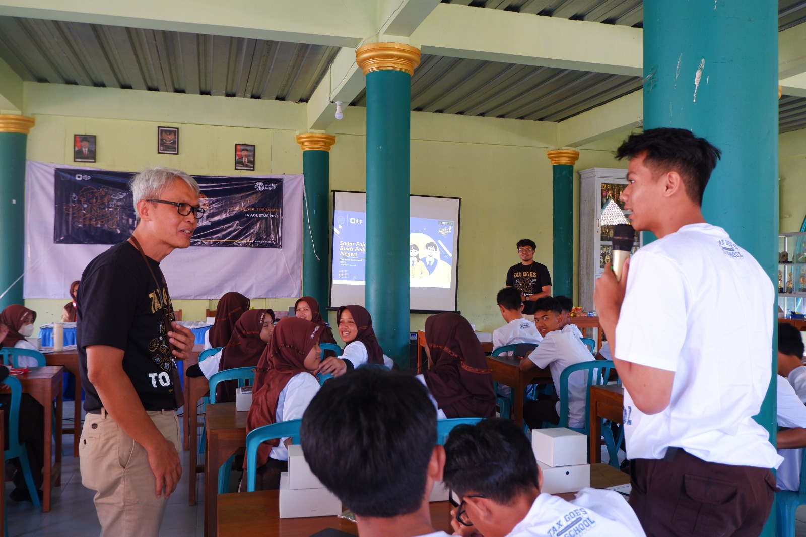 Pajak Bertutur 2023 dilaksanakan serentak di seluruh wilayah Indonesia. Tim Penyuluh Pajak KPP Pratama Temanggung memandu langsung kegiatan tersebut. Acara dibuka dengan menyanyikan lagu kebangsaan Indonesia Raya. Wakil Kepala SMP Negeri 2 Temanggung Istain S.Pd memberikan sambutan kemudian dilanjutkan dengan sambutan dari Rina Setyawati Lestari selaku Kepala Seksi Pelayanan KPP Pratama Temanggung.