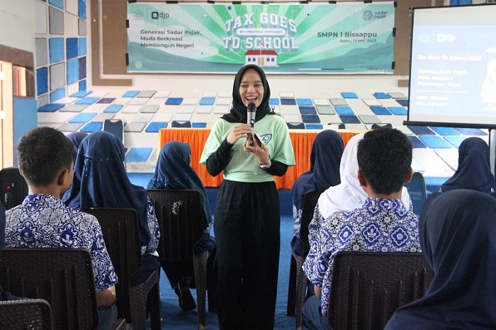 Kantor Pelayanan Pajak (KPP) Pratama Bantaeng bersama SMP Negeri 1 Bissappu melaksanakan kegiatan edukasi pajak kepada generasi muda yang dikemas dalam bentuk acara Tax Goes To School (TGTS) di Aula SMPN 1 Bissappu (Rabu, 17/5). Kegiatan ini diikuti oleh 50 siswa SMPN 1 Bissappu oleh berbagai tingkatan kelas.