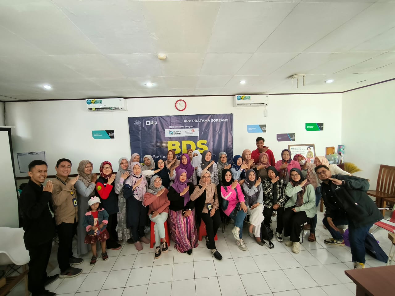 Sesuai dengan program utama Rumah BUMN Telkom Soreang untuk membantu pelaku UMKM Kabupaten Bandung dapat Go Modern, Go Digital, dan Go Online agar dapat menjangkau pasar yang lebih luas, Kegiatan BDS ini jembatan bagi para pelaku UMKM memahami hak dan kewajiban perpajakan. Puluhan pelaku UMKM Kabupaten Bandung yang merupakan binaan Rumah BUMN Telkom Soreang.