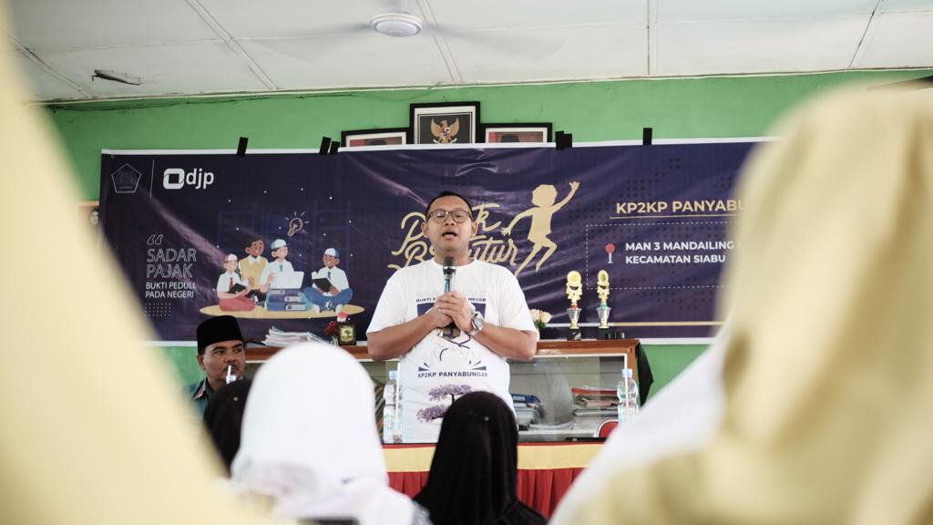 Kantor Pelayanan, Penyuluhan, dan Konsultasi Perpajakan (KP2KP) Panyabungan mengadakan kegiatan Pajak Bertutur tahun 2023 bersama siswa-siswi Madrasah Aliyah Negeri (MAN) Negeri 3 Mandailing Natal. Kegiatan ini dilaksanakan di MAN 3 Mandailing Natal, Kabupaten Mandailing Natal, Sumatera Utara (Kamis, 27/7).