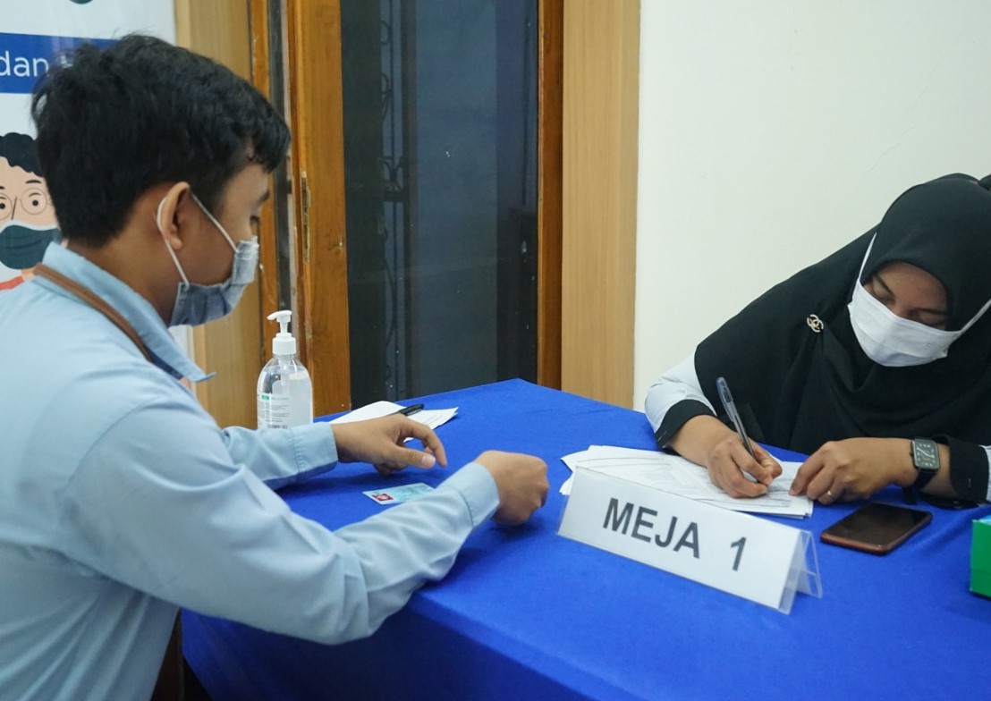 Sebelum melaksanakan kegiatan vaksinasi Covid-19, para pegawai melakukan registrasi dengan mempersiapkan berkas yang diperlukan seperti KTP. Tahap berikutnya yaitu proses screening untuk mengetahui kondisi kesehatan para pegawai apakah dapat diberikan vaksin maupun tidak.