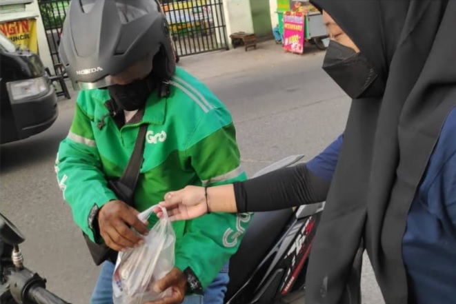 Dalam aksinya para relawan tetap menjaga prokes kesehatan dengan memakai masker dan menjaga agar tidak terjadi kerumunan masyarakat.