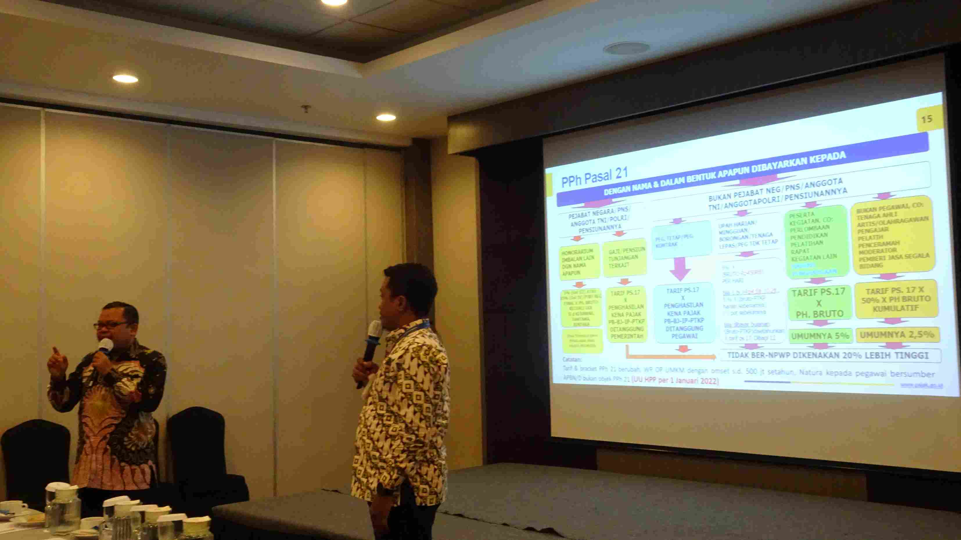 Bertempat di Aston Anyer Beach Hotel, acara ini dihadiri sekitar 100 orang peserta seminar. KPP Pratama Serang Barat yang diwakili oleh Fungsional Penyuluh Pajak Slamet Riyanto menyampaikan materi mengenai perpajakan instansi pemerintah dari Peraturan Menteri Keuangan Nomor 58/PMK.03/2022.