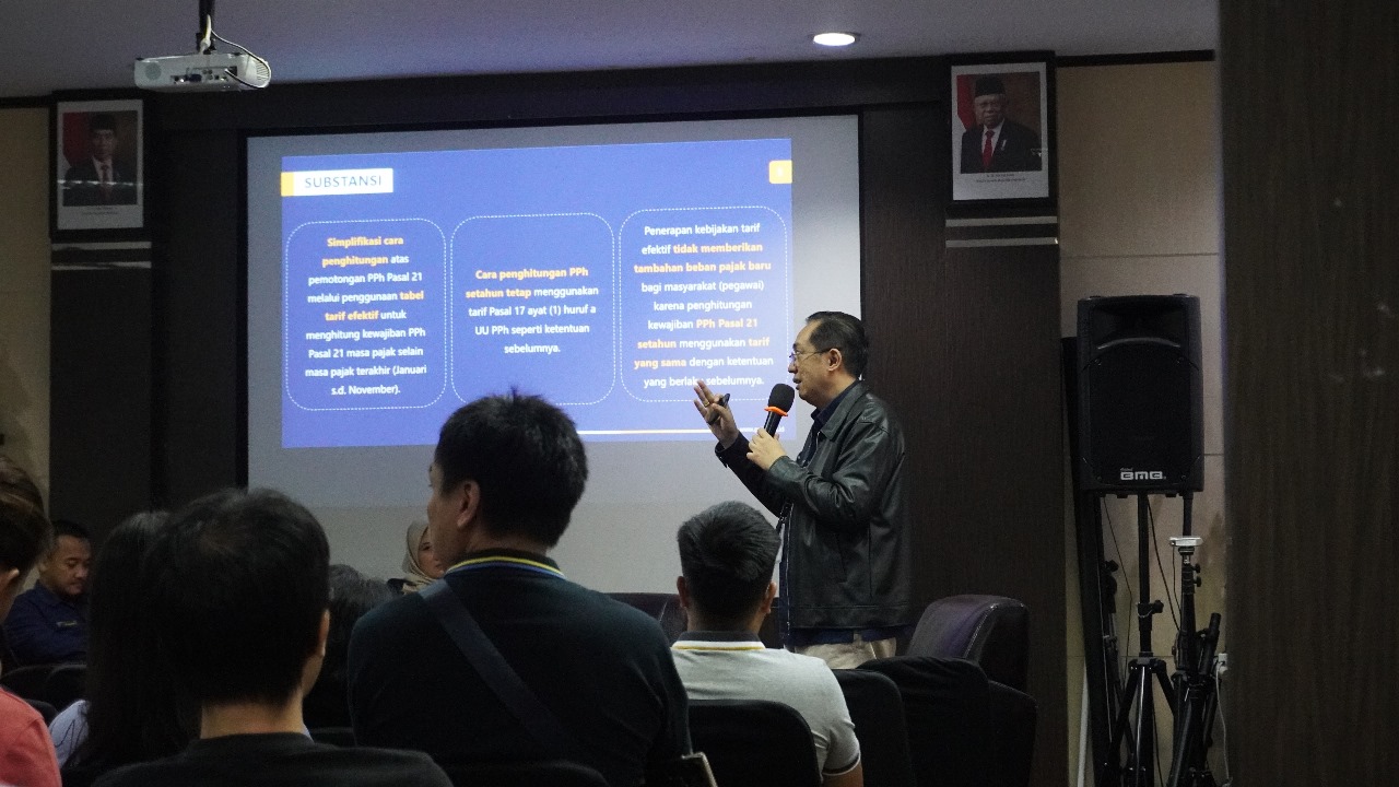 Kantor Wilayah Direktorat Jenderal Pajak Sulawesi Selatan, Barat, dan Tenggara (Kanwil DJP Sulselbartra) menggelar kegiatan sosialisasi perpajakan mengenai Peraturan Menteri Keuangan (PMK) Nomor 48 Tahun 2023 tentang Aspek Perpajakan Pedagang Emas kepada pelaku usaha perdagangan perhiasan emas di Aula KPP Pratama Makassar Barat, Jl. Balaikota No.15, Kota Makassar, Sulawesi Selatan (Rabu, 20/3)