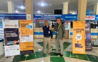 Kepala Kantor Pelayanan, Penyuluhan, dan Konsultasi Perpajakan (KP2KP) Pelabuhan Ratu Djoko Widodo mengunjungi Kantor Samsat Pelabuhan Ratu yang terletak di Jalan Jenderal Sudirman Komplek Perkantoran Pemda, Palabuhanratu, Kabupaten Sukabumi (Selasa, 7/2). Kunjungan itu dilakukan untuk optimalisasi pemutakhiran data mandiri Nomor Induk Kependudukan (NIK) sebagai Nomor Pokok Wajib Pajak (NPWP).