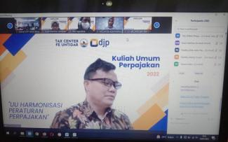 Penyuluh pajak Kantor Wilayah DJP Jawa Tengah II menjadi narasumber dalam kuliah umum perpajakan yang digelar Universitas Tidar (Untidar) Magelang (Selasa,19/7). Kegiatan yang wajib diikuti oleh mahasiwa semester tiga Fakultas Ekonomi Untidar digelar secara daring dan dikuti oleh 311 peserta.