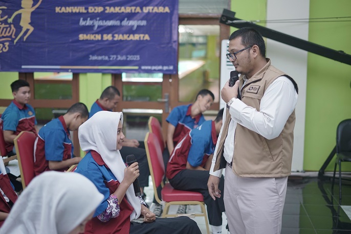 Kantor Wilayah Direktorat Jenderal Pajak (Kanwil DJP) Jakarta Utara menyelenggarakan Pajak Bertutur 2023 di Sekolah Menengah Kejuruan Negeri (SMKN) 56 Jakarta, Jalan Pluit Timur Raya No.1, Pluit, Jakarta Utara.