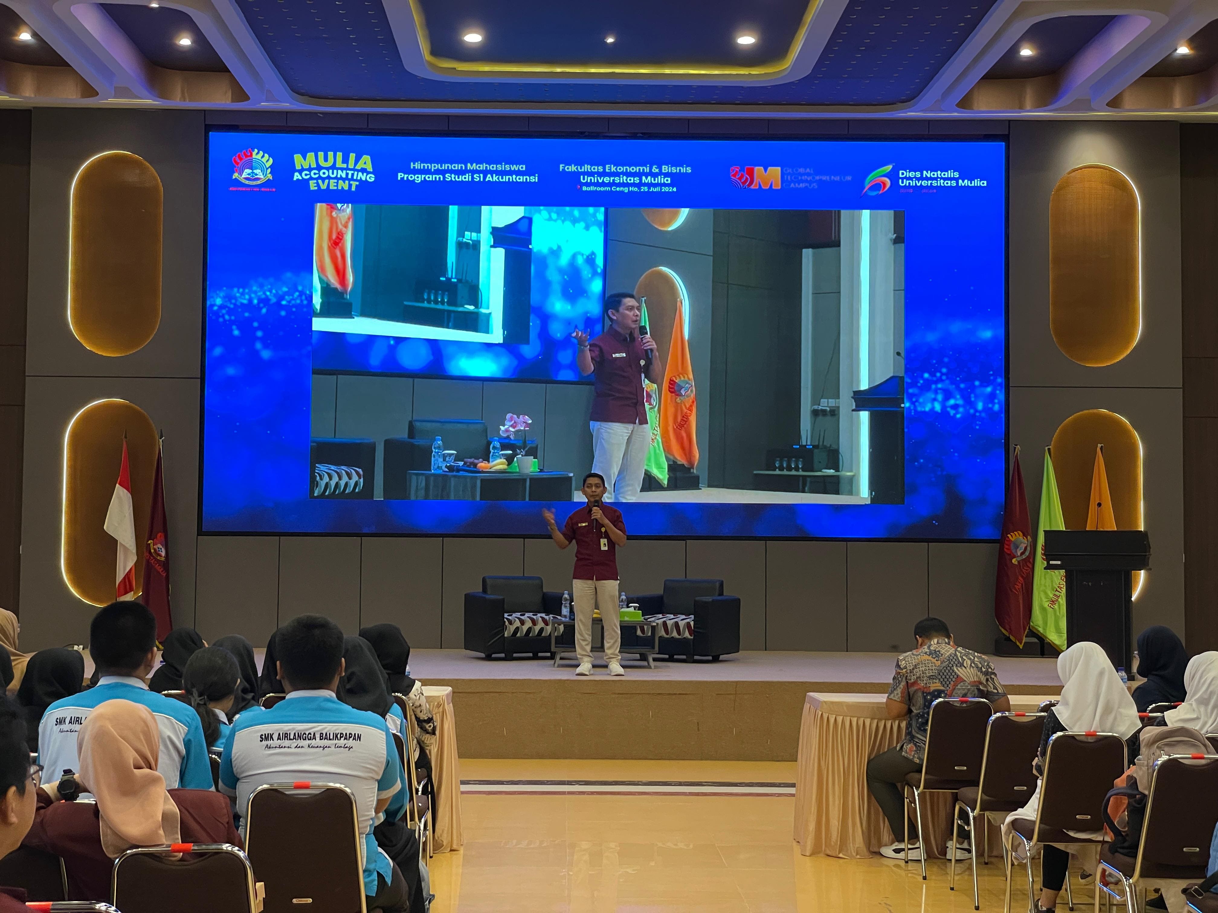 Edukasi perpajakan dikemas dalam acara Mulia Accounting Event dengan materi Tax Education dan Computer Accounting. Acara dibuka dengan sambutan dari Direktur Eksekutif Universitas Mulia Dr. Agung Sakti Pribadi, S.H., M.H. Dalam sambutannya Agung menyampaikan apresiasi kepada narasumber, panitia, dan peserta karena telah merealisasikan kegiatan ini dengan jumlah peserta 100 siswa Sekolah Menengah Kejuruan (SMK) dari SMK Pertiwi dan SMK Airlangga. Sambutan dilanjutkan oleh Wakil Rekor II Universitas Mulia, Yusuf Wibisono, S.E., M.T.I.
