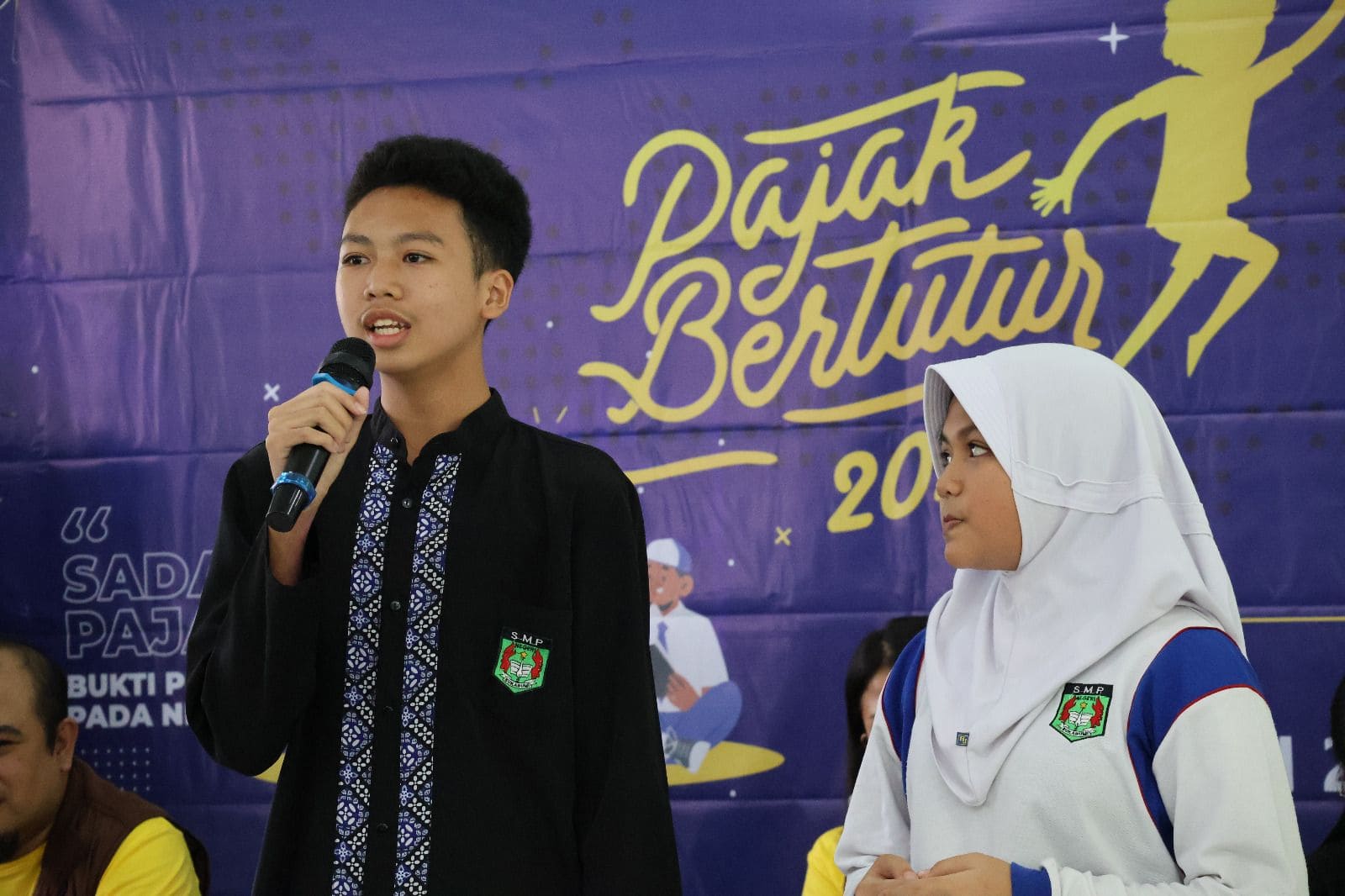 Arham, Kepala SMPN 2 Kota Sukabumi menyampaikan terima kasih kepada Direktorat Jenderal Pajak (DJP) khususnya KPP Pratama Sukabumi karena telah memilih SMPN 2 Kota Sukabumi sebagai tempat penyelenggaraan kegiatan Pajak Bertutur tahun ini. KPP Pratama Sukabumi yang diwakili oleh Kepala Subbagian Umum dan Kepatuhan Internal Agus Yusup dan Seksi Pelayanan Tatang Sujadi menyampaikan pentingnya kesadaran pajak bagi generasi muda.