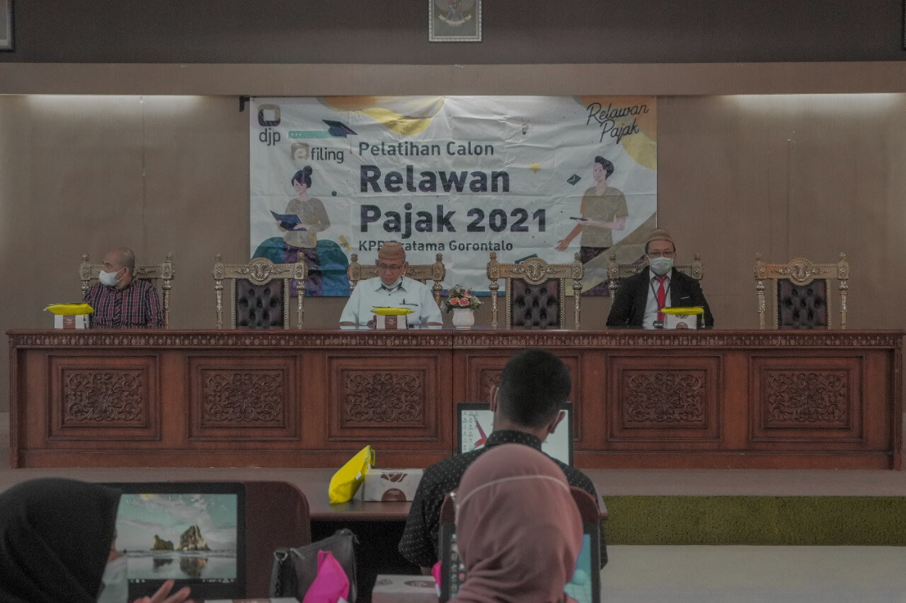 KPP Pratama Gorontalo baru saja mengadakan Pelatihan Calon Relawan Pajak 2021 di Gorontalo (Senin, 1/2). Kegiatan yang diselenggarakan di Universitas Gorontalo (UG) ini dihadiri oleh mahasiswa-mahasiswi Tax Center Universitas Gorontalo beserta Rektor UG Dr. Ibrahim Ahmad, S.H., M.H. dan Ketua Tax Center UG Saprudin. Dihadiri oleh 30 peserta, kegiatan ini merupakan salah satu program Direktorat Jenderal Pajak yang melibatkan mahasiswa dan non-mahasiswa untuk membantu kantor pajak dalam mengedukasi wajib pajak di bidang perpajakan, dalam hal ini adalah asistensi Pelaporan SPT Tahunan 2020.