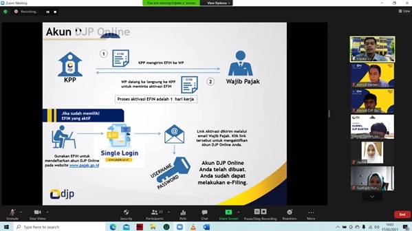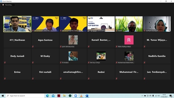 Kanwil DJP Banten adakan sosialisasi tata cara pelaporan SPT Tahunan secara daring yang diikuti oleh 17 mahasiswa calon relawan pajak dari Universitas Terbuka (Rabu, 17/2).