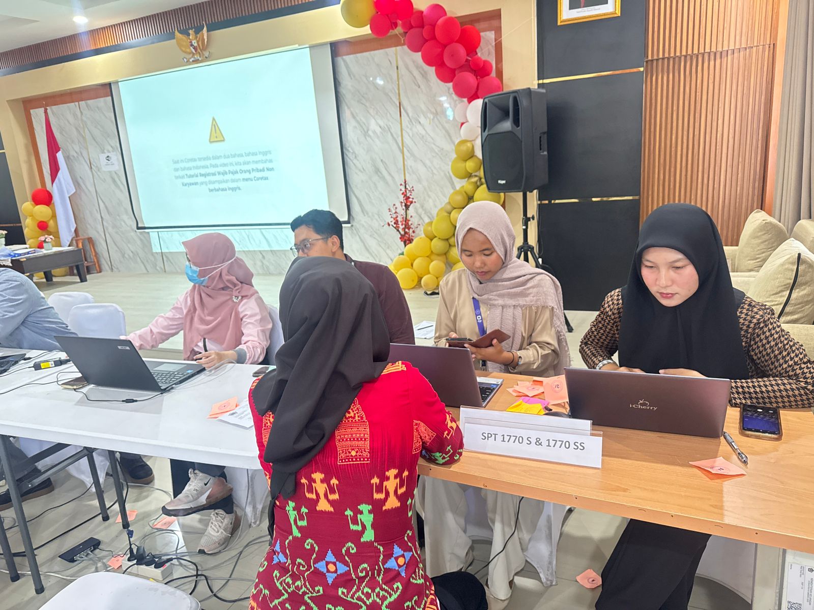 Sejak pukul 08.00, Renjani membantu wajib pajak dalam mengakses dan mengisi SPT secara daring melalui DJP Online, serta memberikan penjelasan mengenai langkah-langkah yang harus dilakukan.