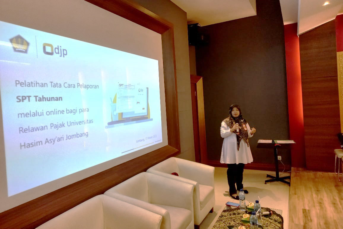 Kantor Wilayah Direktorat Jenderal Pajak (DJP) Jawa Timur II menyelenggarakan acara pelatihan Relawan Pajak setelah resmi mengukuhkan 10 mahasiswa Tax Center Universitas Hasym Asy’ari (Unhasyi) Jombang sebagai Relawan Pajak tahun 2023 (Senin, 13/3). Dalam kegiatan ini, Relawan Pajak Unhasyi mendapatkan pelatihan perpajakan dari tim Fungsional Penyuluh Pajak KPP Pratama Jombang bertempat di Museum Islam Indonesia Diwek Jombang, Kota Jombang.