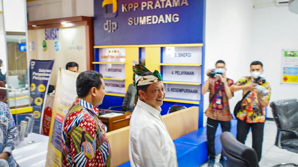 Menteri Dalam Negeri Tito Karnavian mengunjungi loket Kantor Pelayanan Pajak (KPP) Pratama Sumedang dalam kunjungannya ke Mall Pelayanan Publik (MPP) Kabupaten Sumedang di Jl. Prabu Geusan Ulun No.36 Sumedang Selatan (Jumat, 21/10).