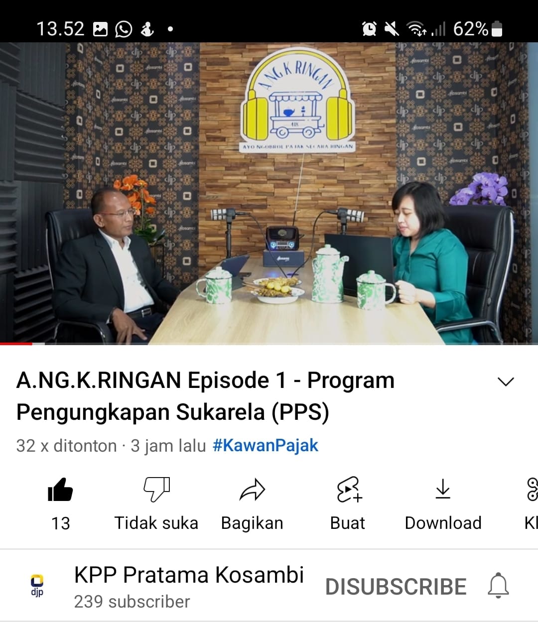 “Podcast Angkringan akan dilaksanakan secara berkelanjutan, untuk memberikan informasi terbaru dan mengedukasi wajib pajak melalui media sosial youtube,” pungkas Dyah.