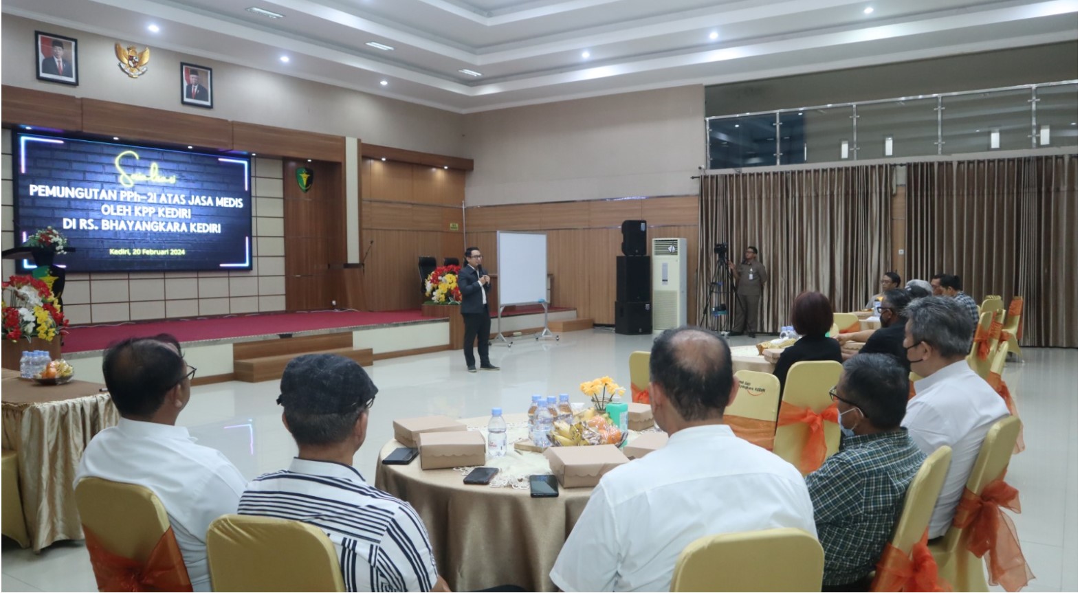 Rumah Sakit Bhayangkara Kediri gandeng Kantor Pelayanan Pajak (KPP) Pratama Kediri dalam sosialisasi pemungutan Pajak Penghasilan 21 (PPh 21) atas jasa medis di Aula Tribrata RS Bhayangkara Kediri, Jalan Kombes Pol Duryat Kediri (Selasa, 20/2). Sosialisasi tersebut dihadiri oleh 50 peserta dokter mitra dan dokter internal di rumah sakit tersebut.