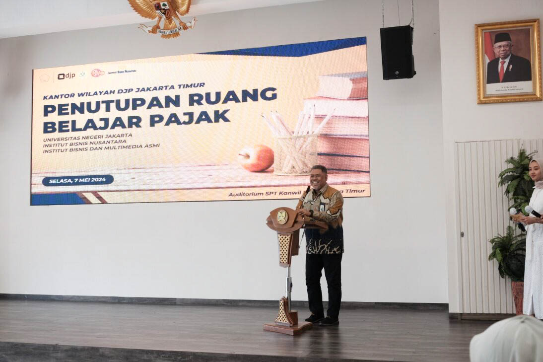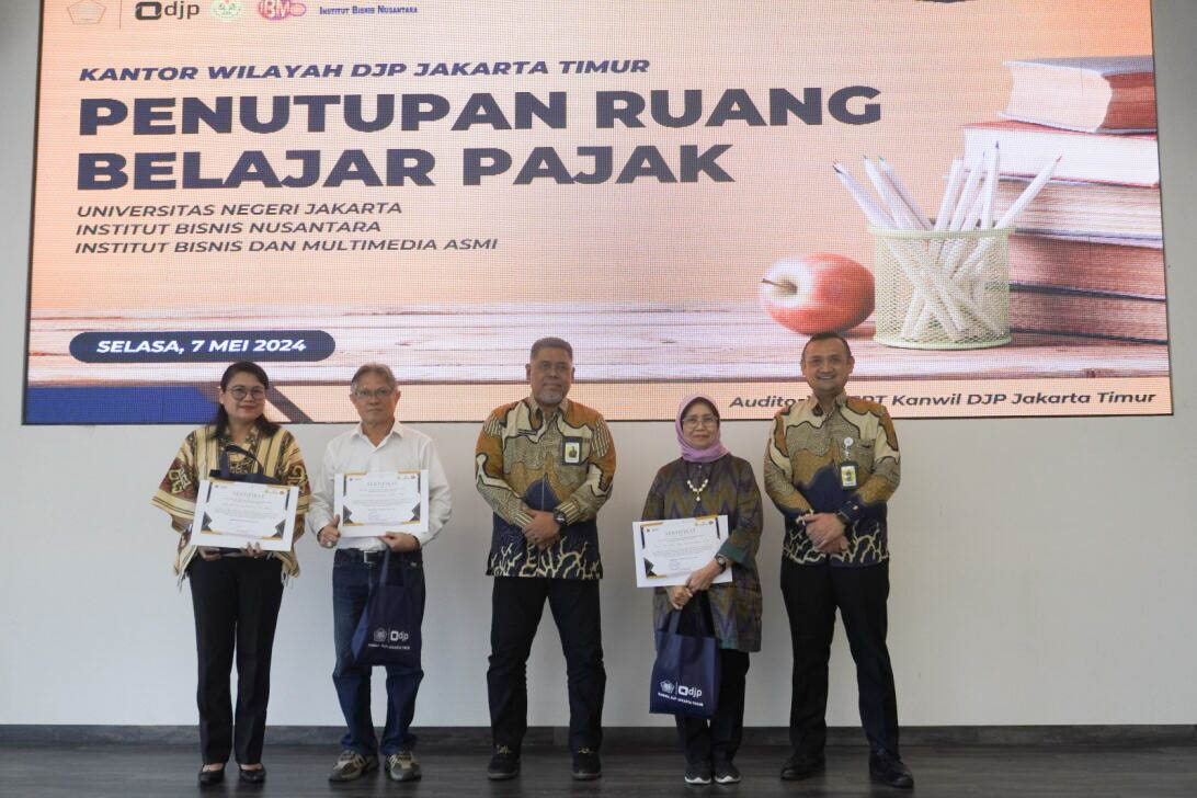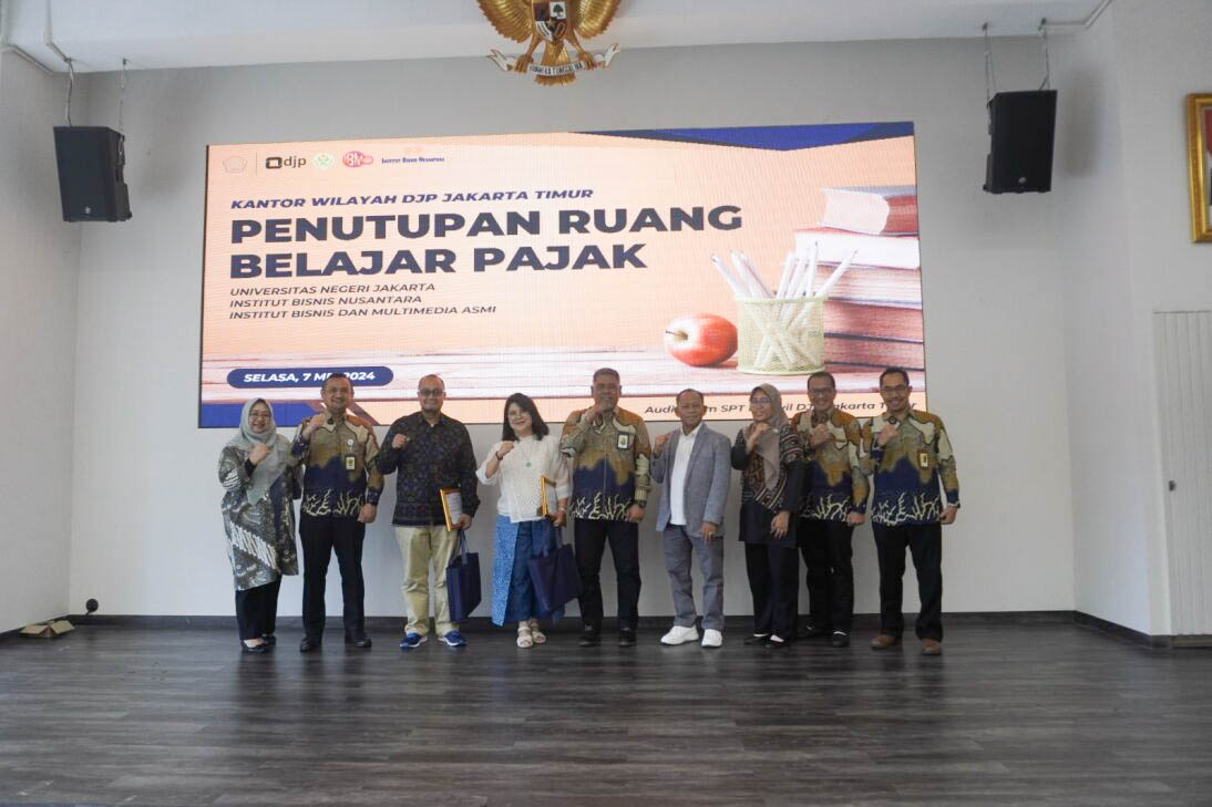 Kantor Wilayah (Kanwil) Direktorat Jenderal Pajak (DJP) Jakarta Timur berkolaborasi dengan Universitas Negeri Jakarta (UNJ), Institut Bisnis Nusantara (IBN), dan Institut Bisnis dan Multimedia (IBM) ASMI untuk menyelenggarakan Penutupan Ruang Belajar Pajak yang bertempat di Auditorium SPT Kanwil DJP Jakarta Timur (Selasa, 7/5).