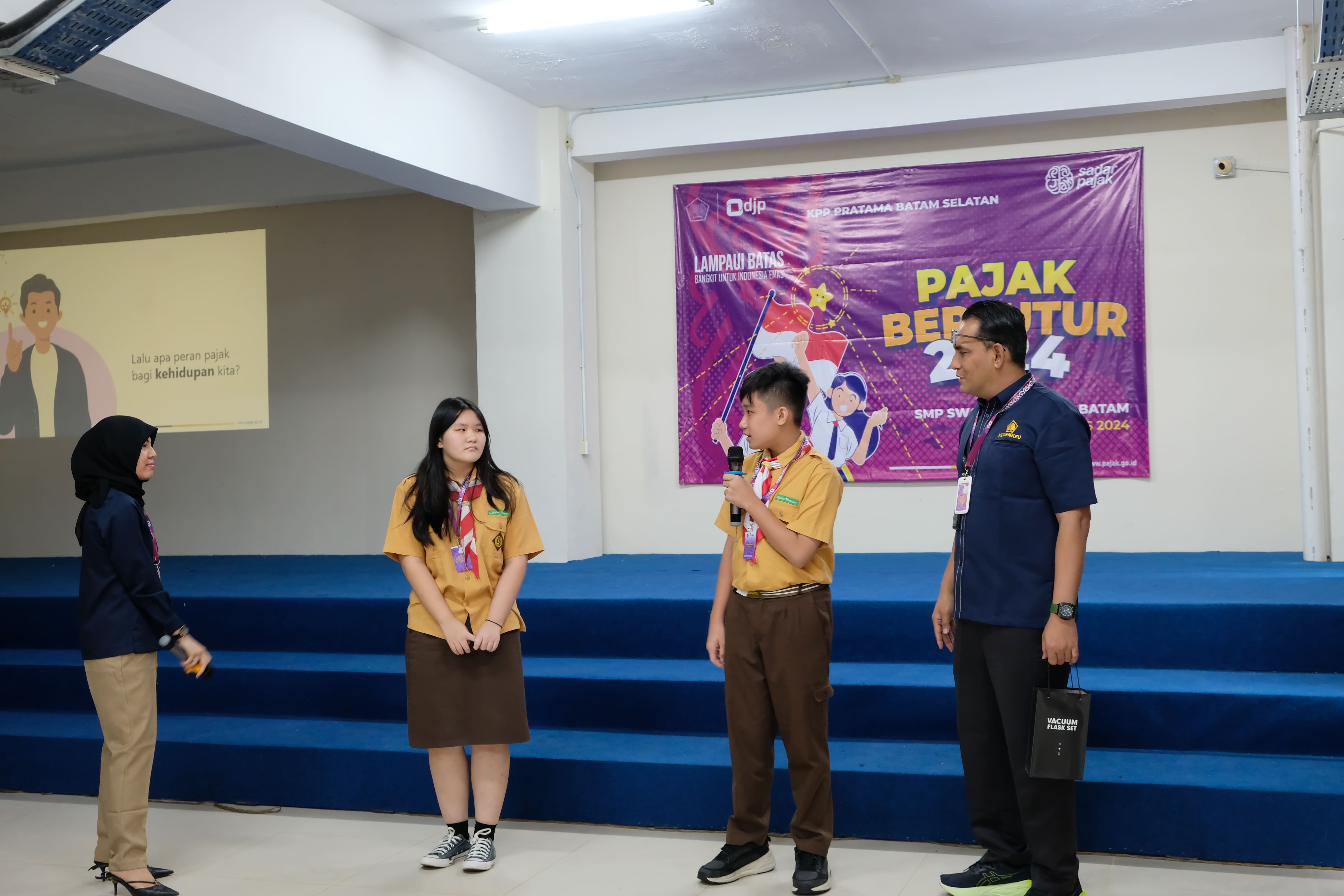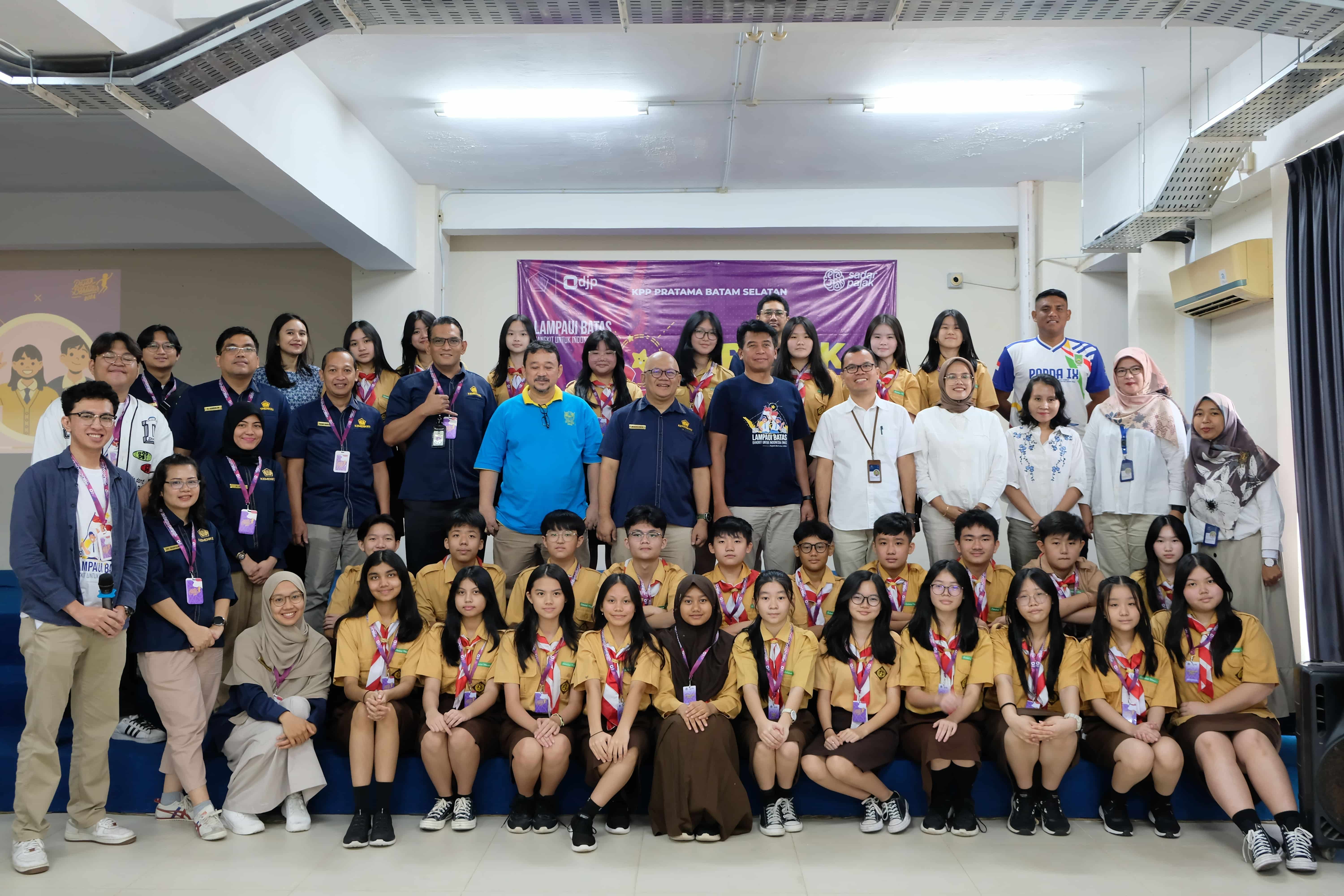 Kantor Pelayanan Pajak (KPP) Pratama Batam Selatan menyelenggarakan Pajak Bertutur (Patur) Tahun 2024 di SMP Swasta Mondial, Kota Batam, Kepulauan Riau (Rabu, 7/8). Kegiatan yang diikuti oleh 30 siswa ini bertempat di Aula Sekolah Yayasan Mondial Anugrah Indonesia dan berlangsung selama kurang lebih 2 jam, dimulai sejak pukul 08.30 WIB.