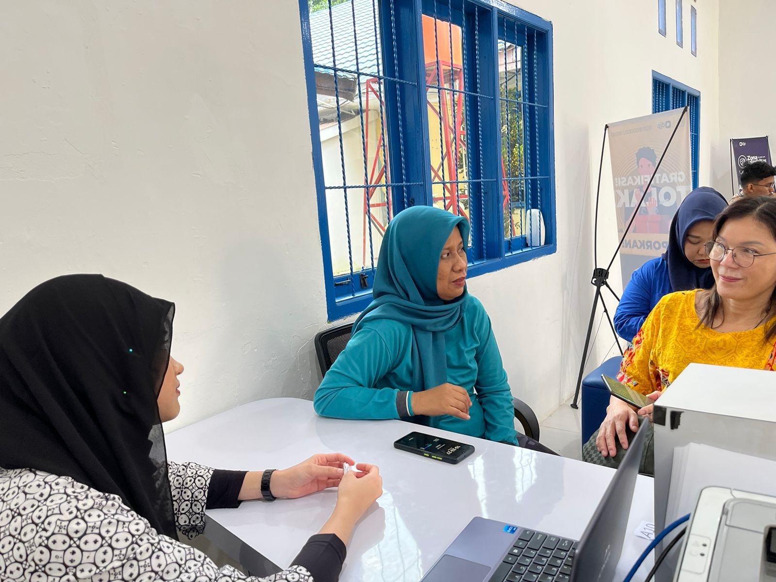 Nabella Putri, Petugas Loket Help Desk, menyambut kedatangan Cici. Cici hadir bersama dengan kerabatnya untuk menanyakan aspek kewajiban perpajakan dari perusahaan keluarganya di Morowali yang baru terdaftar tahun kemarin di bulan November.