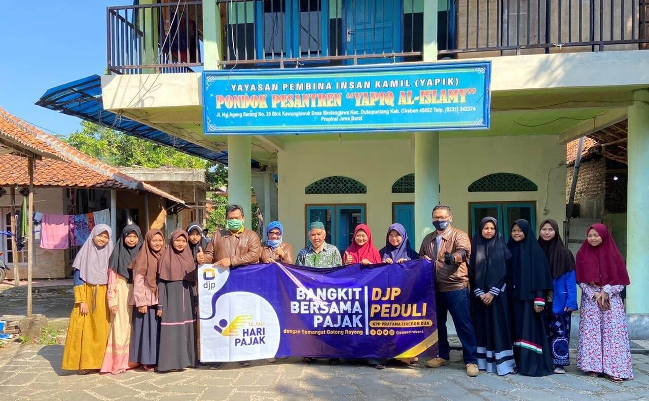 Dalam rangka memperingati Hari Pajak, KPP Pratama Cirebon Dua melaksanakan Kegiatan DJP Peduli di Pondok Pesantren “Yapiq Al-Islamy” yang bertempat di Kecamatan Duku Puntang, Kabupaten Cirebon (Rabu, 8/7). Penyerahan berupa sembako secara simbolis diberikan oleh Kepala KPP Pratama Cirebon Dua dan diterima langsung oleh ketua pondok pesantren.