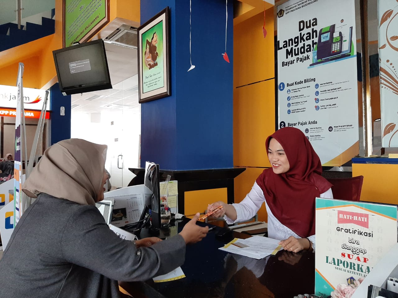 Dalam rangka memperingati Hari Ibu yang sedianya jatuh tanggal 22 Desember, Petugas Tempat Pelayanan terpadu (TPT) Kantor Pelayanan Pajak (KPP) Pratama Bojonegoro membagikan cokelat bertuliskan “We are born of love. Love is our mother. Selamat Hari Ibu” kepada wajib pajak (WP) perempuan yang sedang menunaikan kewajiban perpajakannya di ruang TPT KPP Pratama Bojonegoro (Senin, 23/12).