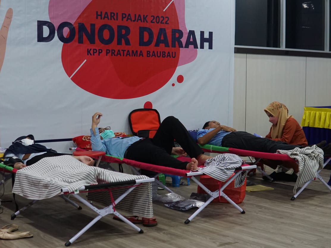 Kantor Pelayanan Pajak (KPP) Pratama Baubau menggelar kegiatan donor darah sebagai rangkaian acara Peringatan Hari Pajak yang jatuh pada tanggal 14 Juli di ruang aula KPP Pratama Baubau, Kota Baubau (Rabu, 13/7). Kegiatan ini terlaksana berkat kerja sama dengan Unit Pelaksana Transfusi Darah Palang Merah Indonesia (PMI) Kabupaten Buton.