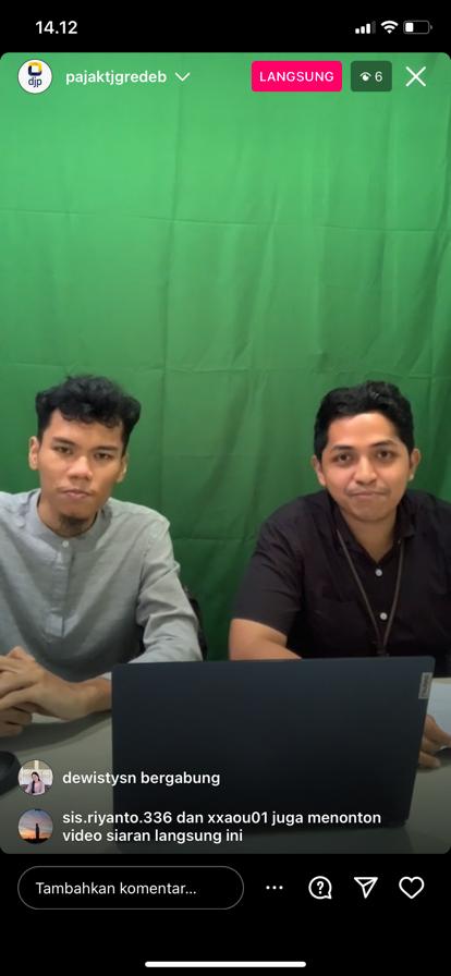 Is Bintoro Yuan Saputro bersama dengan Irvan Ugaharisto Selladepa selaku Asisten Penyuluh Pajak Kantor Pelayanan Pajak (KPP) Pratama Tanjung Redeb menyelenggarakan kegiatan edukasi tata cara pelaporan Surat Pemberitahuan (SPT) Tahunan Badan melalui siaran langsung instagram pada akun resmi KPP Pratama Tanjung Redeb yaitu @pajaktjredeb. Kegiatan siaran langsung instagram ini diselenggarakan di KPP Pratama Tanjung Redeb, Jalan Jenderal Sudirman No 104, Pamusian, Tarakan Tengah, Kota Tarakan, Kalimantan Utara (Kamis, 13/4).