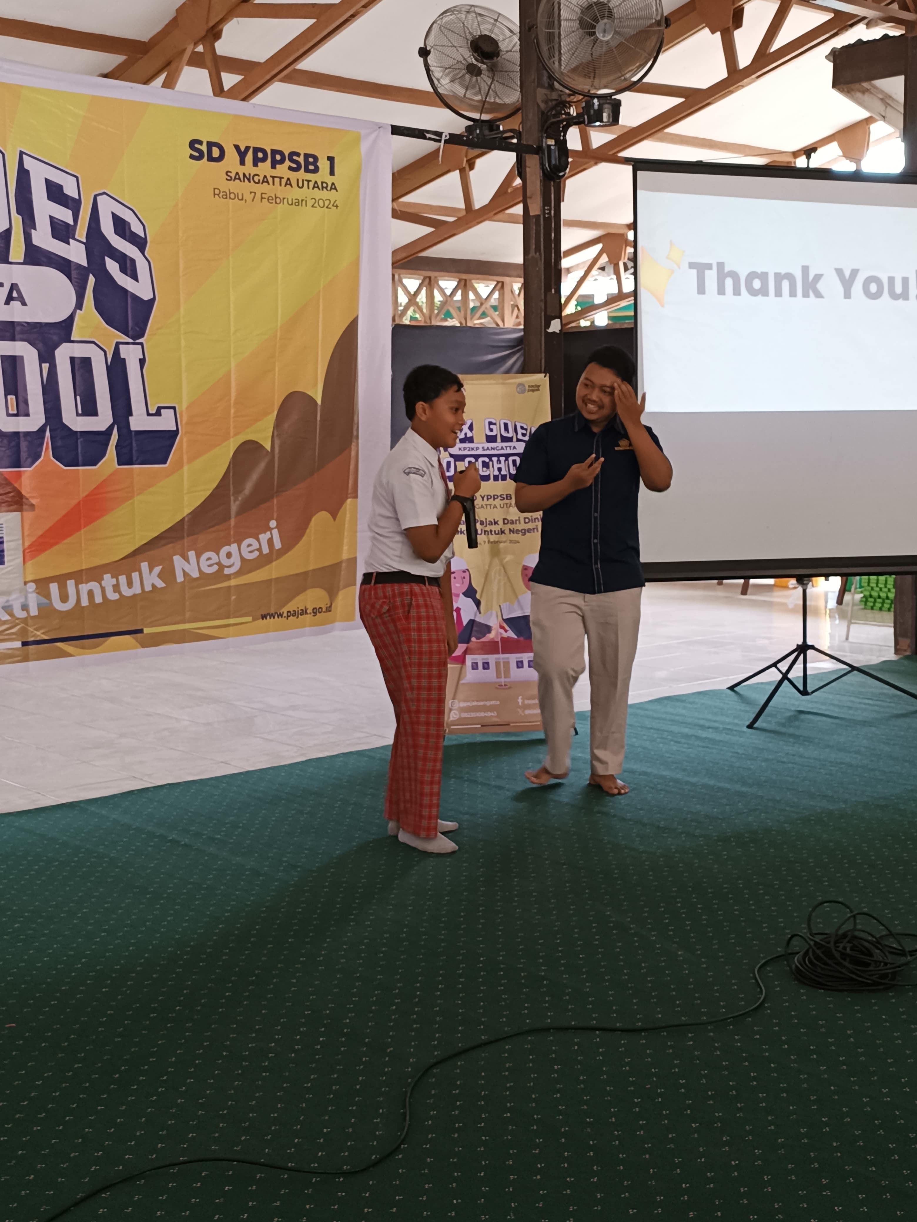 Kantor Pelayanan, Penyuluhan, dan Konsultasi Perpajakan (KP2KP) Sangatta mengadakan Tax Goes To School (TGTS) 2024 dengan tema “Sadari Pajak Dari Dini, Bakti Untuk Negeri” bertempat di Aula Serba Guna SD Yayasan Pendidikan Prima Swarga Bara (YPPSB) 1 Sangatta Utara, Kab. Kutai Timur (Rabu, 07/02).