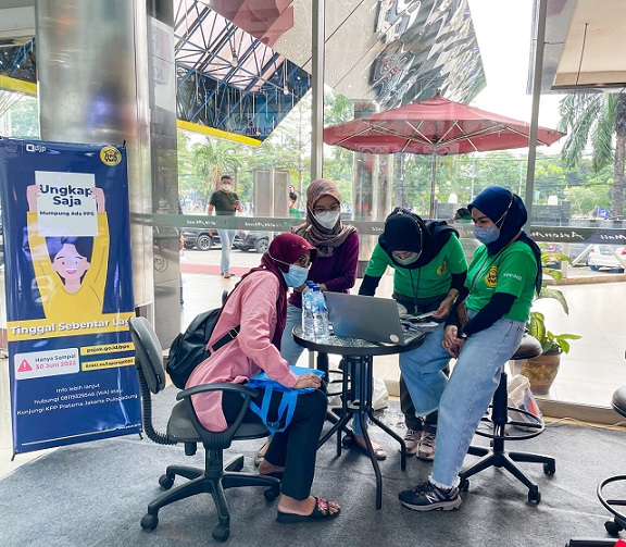 Kantor Pelayanan Pajak Pratama Jakarta Pulogadung membuka Layanan Pojok Pajak Program Pengungkapan Sukarela (PPS) di Pusat Perbelanjaan Arion Mall, Jalan Pemuda, Rawamangun, Pulogadung, Jakarta Timur (Sabtu, 18/6).