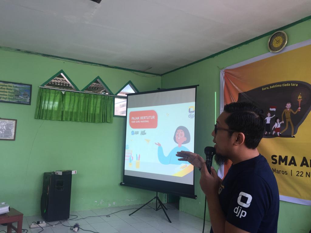 “Kami hadir disini untuk memberikan edukasi dalam rangka memperkenalkan pajak lebih dini," ungkap Kepala KPP Pratama Maros dalam sambutan acara Pajak Bertutur di SMA Angkasa, Maros.