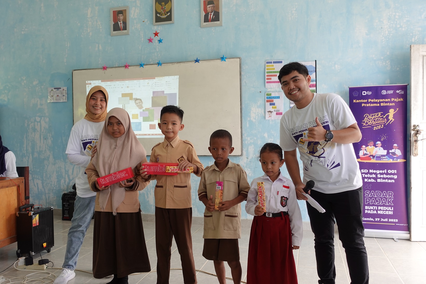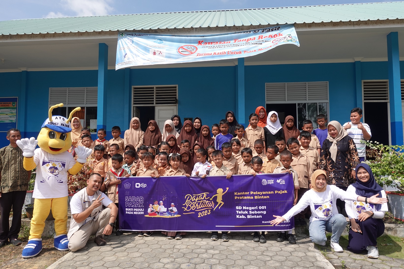 Kantor Pelayanan Pajak (KPP) Pratama Bintan menyelenggarakan Pajak Bertutur 2023 bekerja sama dengan Sekolah Dasar Negeri (SDN) 001 Teluk Sebong berlokasi di Desa Sri Bintan, Kecamatan Teluk Sebong, Kabupaten Bintan, Kepulauan Riau (Kamis, 27/7). Untuk menuju lokasi dibutuhkan waktu satu jam perjalanan darat dari Kantor Pelayanan Pajak (KPP) Pratama Bintan.