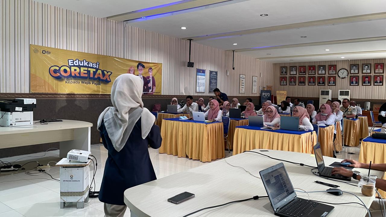 Sebanyak 16 bendahara dari Saturan Kerja Perangkat Daerah (SKPD) di Kota Tasikmalaya mengikuti kegiatan Bimbingan Teknis (Bimtek) Implementasi Coretax DJP yang diselenggarakan di Aula KPP Pratama Tasikmalaya, Kota Tasikmalaya (Rabu, 12/2). Kegiatan ini bertujuan untuk meningkatkan pemahaman dan keterampilan para bendahara dalam memenuhi kewajiban dan melaksanakan hak perpajakannya melalui aplikasi Coretax.