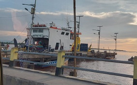 Beberapa pegawai Kantor Pelayanan Pajak (KPP) Pratama Singkawang menempuh jarak 70 kilometer dan menyebrangi Sungai Jawai untuk membuka loket Layanan Di Luar Kantor (LDK) di Kantor Kecamatan Jawai, Kabupaten Sambas, Kalimantan Barat (Jamis, 24/11). Kegiatan LDK ini diadakan sejak Selasa, 22 November 2022.