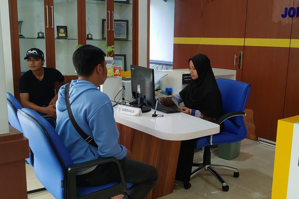 Intan Rachmadani Nirmala yang merupakan pelaksana frontliner paling muda di Seksi Pelayanan tengah memberikan layanan kepada wajib pajak di Loket 1 Tempat Pelayanan Terpadu (TPT) Kantor Pelayanan Pajak (KPP) Pratama Jombang (Selasa, 17/12).